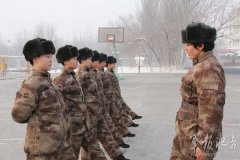 新疆某通信总站女兵顶风冒雪训练
